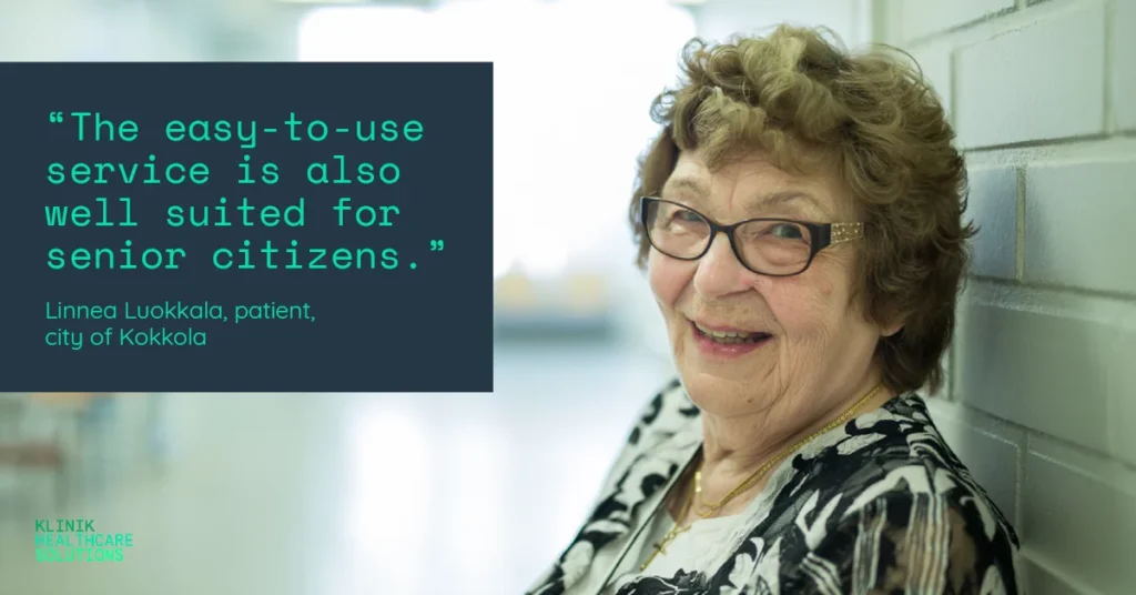 Senior patients are satisfied with the online consultation service. Linnea Luokkala, from Kokkola, thinks that the easy-to-use service is well suited for senior citizens. Linnea’s own experience of the online consultation service was excellent. She filled in her symptoms to the online service at home with her computer. After that she got an appointment with a doctor and got the right treatment and help for her concern.