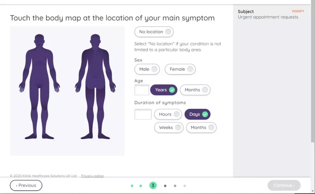 Klinik Access is an online consultation & patient flow management software that directs patients to the optimal resource in primary care. The system’s unique algorithm interprets the person’s symptoms to make a provisional assessment, and estimates the urgency of the care needed. Based on this, the person is automatically referred to the right place for care to begin.