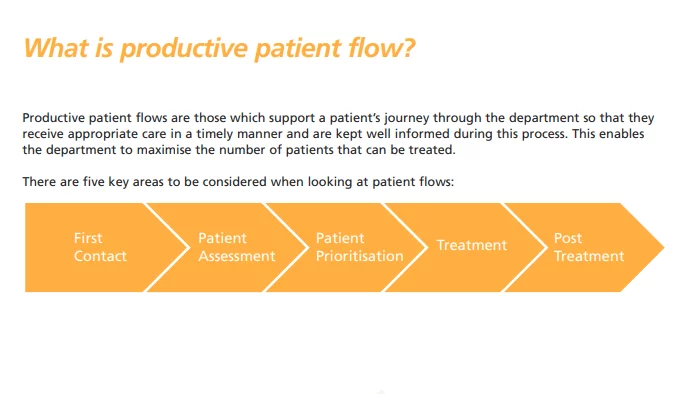 The term ‘patient flow’ refers to the ability of healthcare systems to manage patients effectively and with minimal delays as they move through stages of care, according to NHS Improvement.